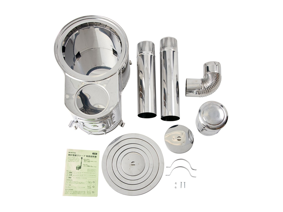 | 商品の特徴 | 9ea0b9f58e8d1d69beaf6747742be1。ステンレス 時計1型薪ストーブセット ASS-60 【煙突径 φ106mm。ホンマ製作所 ステンレス 時計1型薪ストーブセット ASS-60を。新品未使用箱不良(外箱に破損や汚れがございます)商品外箱に直接送り状を貼って送付いたします商品説明【特長】◆すぐに使える煙突付き。◆変わらぬデザインが懐かしい日本の薪ストーブです。◆ストーブ本体はステンレスを使用しており、錆びにくく美しい見た目が特長となっています。◆本体サイズ:W400xD600xH345(煙突含:1300)mm◆材質:ステンレス(SUS430)◆重量:6.6kg◆煙突位置:背面◆最大薪長さ:500mm◆最大熱出力:4.2kW(MAX)◆暖房面積:10~15坪◆付属品:エビ曲90°1個、半直筒2本、専用トップ1個(非売品)、二つ割1個時計1型薪ストーブセット ASS-60ブランド:ホンマ製作所。ホンマ製作所 ステンレス 時計1型薪ストーブセット ASS-60を。豪華な時計型薪ストーブセット。【APELUCA】テーブルトップスモーカー アペルカ APS7000。《新品未使用》weber バーベキューコンロ:直径47㎝。◆暖房、野外調理、防災用品と様々な用途でお使いいただける優れものです。スノーピーク 焚き火台L スターターセット 6点セット。スノーピーク peak フラットバーナー【未使用品】。【製品仕様】◆煙突径:φ106mm ※他社製煙突とは接続出来ない場合がございます。スノーピーク peak コーヒーミル コーヒードリッパー 焚き火台型 | ||