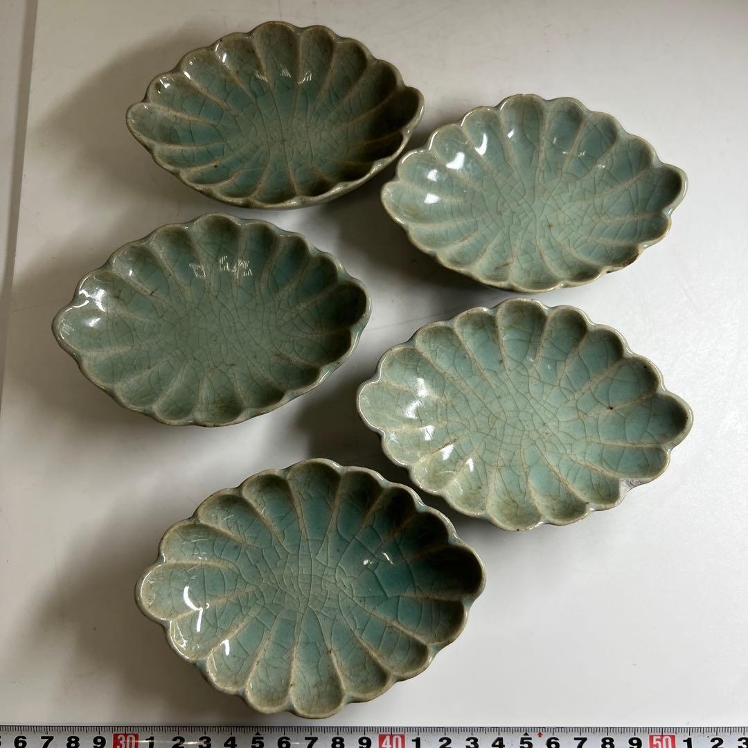 | 商品の特徴 | 古伊万里 青磁 皿揃い 5枚 古伊万里 青磁 皿揃い 5枚 Yahoo。古伊万里 青磁菊割皿5枚 幅約12㎝ 東Y7-0704②タトヒサ 【。Yahoo!オークション -「初期伊万里青磁」の落札相場・落札価格。n1A2 古伊万里●サイズ横:約15.5cm素人の採寸ですので若干の誤差はご了承ください。●状態割れ、カケなどの目立ったキズは見当たりませんでした。経年による汚れ、小キズがございます。完品をお求めの方、神経質な方はご遠慮ください。●その他、注意事項古い物ですのでご理解の上でご購入ください。価格交渉は具体的な金額を提示してコメントからお願いします。希望金額の登録は反応無いことが多いのでご遠慮ください。種類...陶器種類...皿/プレート種類...小皿。初期伊万里青磁染付鷺文足付皿 1640〜1655年代 径15cm x 高さ3.5。有田焼 静山作 金彩鶴絵柄 大皿 直径約46cm 特大 色絵皿 ゴールド。♦中国 画琺瑯 花図紋瓶 景泰藍工芸品 七宝焼 コレクション 骨董品アンティーク。花窯 花壺。朝鮮美術 李朝白磁染付壺 李朝壷 李朝染付壺 華道具 朝鮮古陶 Q1900。♦安藤七宝 菊花文様 瓶 壺 花瓶 七宝焼 美術品 工芸品 コレクション 骨董品。蕎麦猪口 染付印判 明治 大正 木箱 共箱 松竹梅 5客 向付 | ||